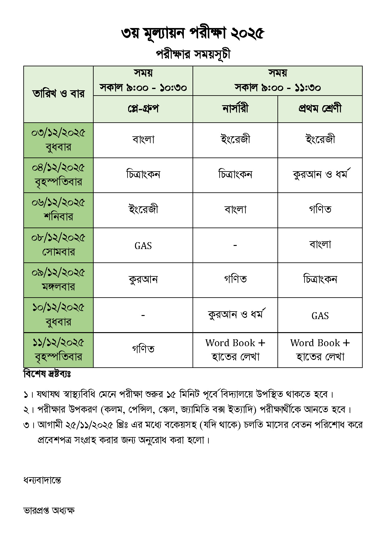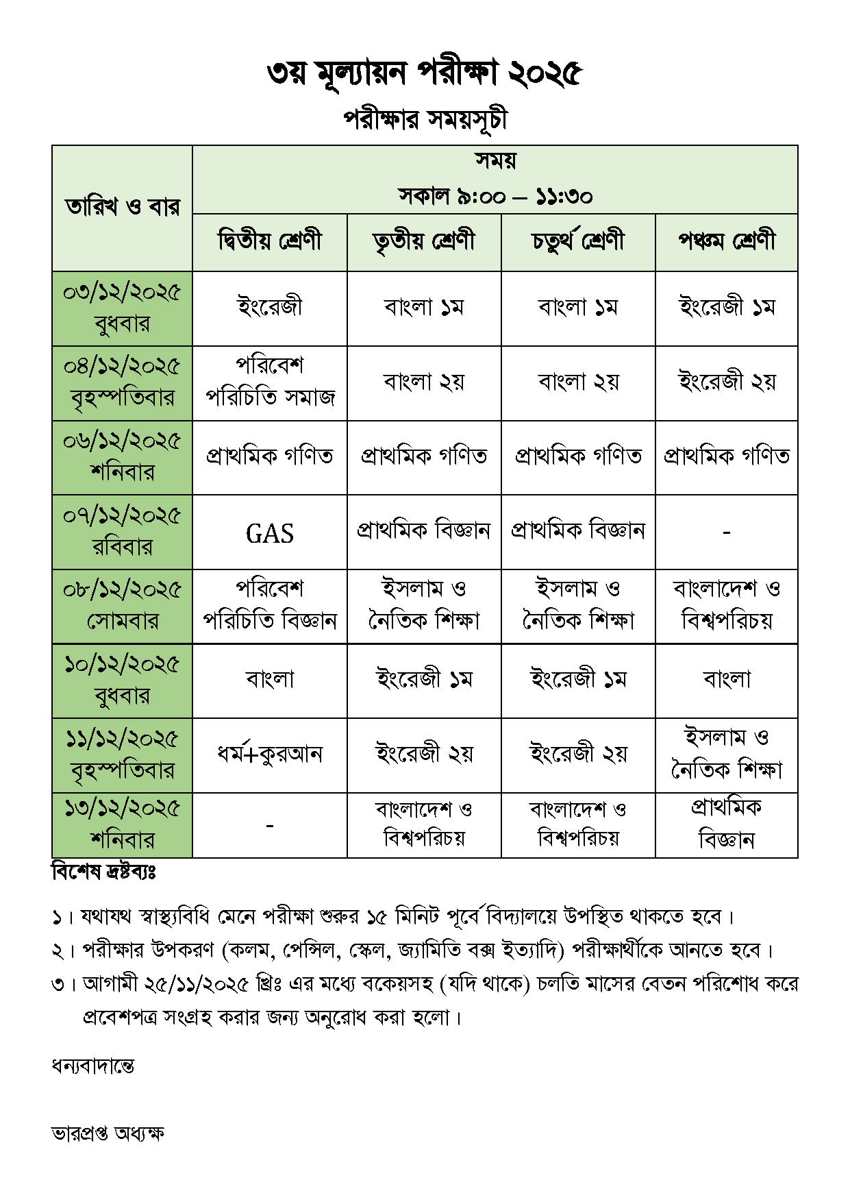 ২য় মূল্যায়ন পরীক্ষা ২০২৫